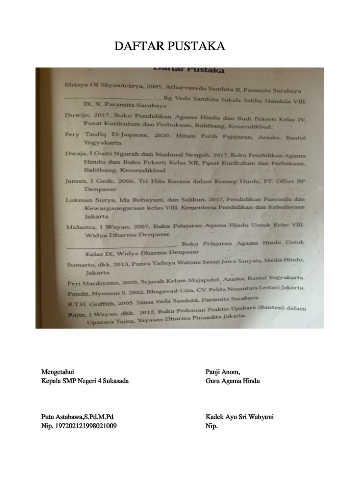 DAFTAR PUSTAKA Mengetahui Panji Anom, Kepala SMP Negeri 4 Sukasada Guru Agama Hindu Putu Astabawa,S.Pd.M.Pd Kadek Ayu Sri Wahyuni Nip. 197202121998021009 Nip.