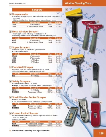 • Light-weight handle and snap-on cover; scraper is easy to use