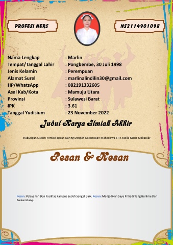 Pesan: Pelayanan Dan Fasilitas Kampus Sudah Sangat Baik. Kesan: Menjadikan Saya Pribadi Yang Berilmu Dan