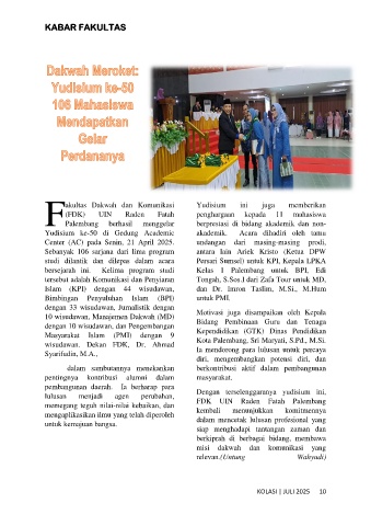 10 wisudawan, Manajemen Dakwah (MD) Motivasi juga disampaikan oleh Kepala