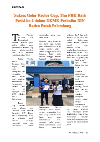 perlombaan Rector Cup juara kedua di Rector Cup pertama.“Secara