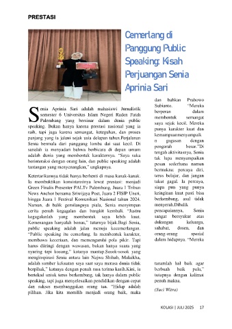 speaking. Bukan hanya karena prestasi nasional yang ia saya sejak kecil. Mereka