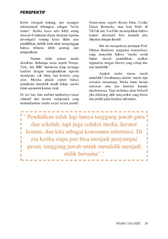 jurnalisme mendidik masih hidup—meski semakin menantang. Media harus berani