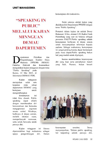 diperuntukkan bagi mahasiswa sebagai menyampaikan, “Dalam public speaking,
