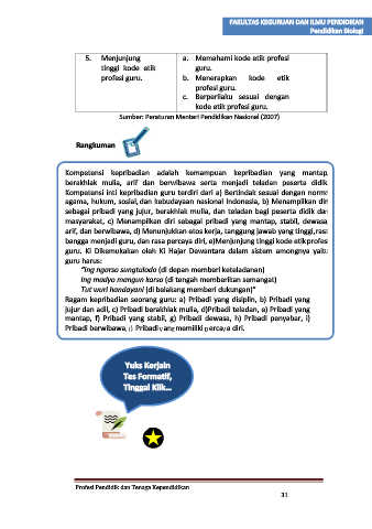 bangga menjadi guru, dan rasa percaya diri, e)Menjunjung tinggi kode etik profesi