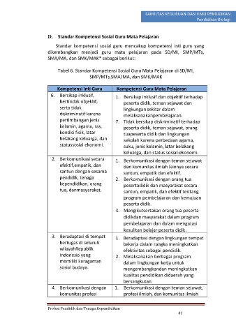Tabel 6. Standar Kompetensi Sosial Guru Mata Pelajaran di SD/MI,