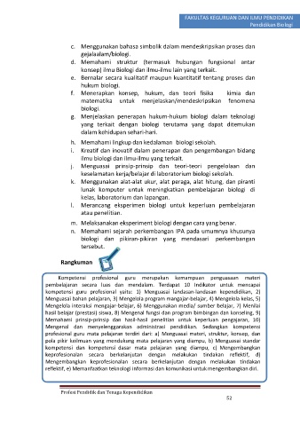 h. Memahami lingkup dan kedalaman biologi sekolah.