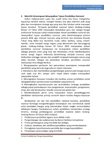 E. Memiliki Kemampuan Mewujudkan Tujuan Pendidikan Nasional
