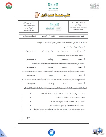 Page 54 - ملف تحضير مادة الحاسب الآلي