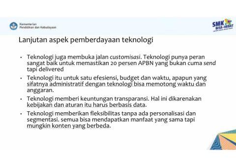 • Teknologi itu untuk satu efesiensi, budget dan waktu, apapun yang
