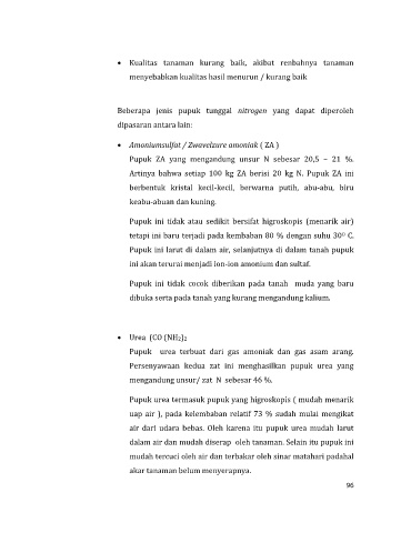 Artinya bahwa setiap 100 kg ZA berisi 20 kg N. Pupuk ZA ini