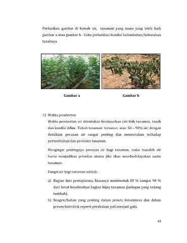 Waktu pemberian air ditentukan berdasarkan ciri fisik tanaman, tanah