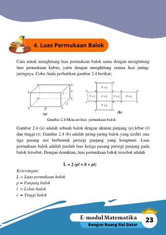balok tersebut. Dengan demikian, luas permukaan balok tersebut adalah