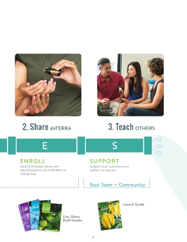 2. Share dōTERRA 3. Teach OTHERS E S ENROLL SUPPORT Enroll & empower others with Support your customers and natural solutions and invite them to builders to success. change lives. Your Team + Community Launch Guide Live, Share, Build Guides 5