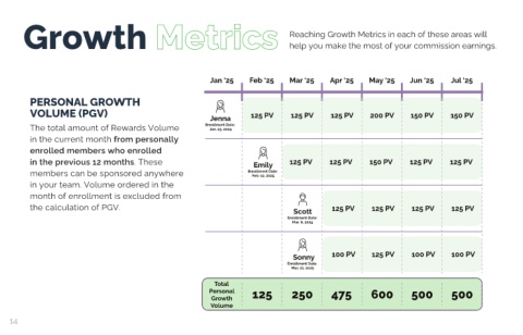 VOLUME (PGV) Jenna 125 PV 125 PV 125 PV 200 PV 150 PV 150 PV above, you include members JAN 2025