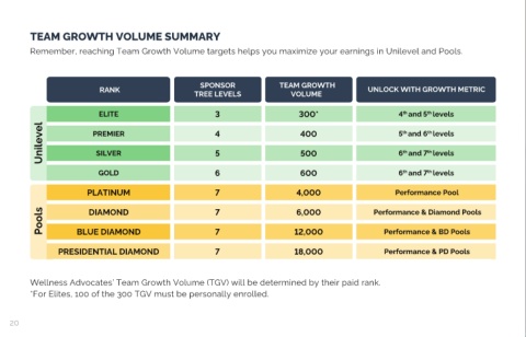 Wellness Advocates’ Team Growth Volume (TGV) will be determined by their paid rank. RETAIL CUSTOMER