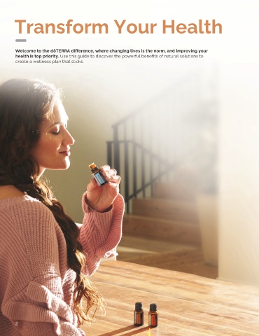Transform Your Health Welcome to the dōTERRA difference, where changing lives is the norm, and improving your health is top priority. Use this guide to discover the powerful benefits of natural solutions to create a wellness plan that sticks. 2 2