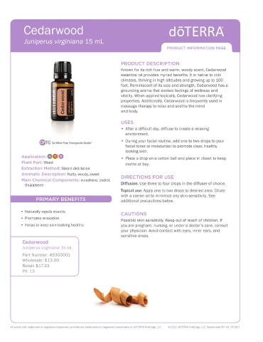All words with trademark or registered trademark symbols are trademarks or registered trademarks of dōTERRA Holdings, LLC ©2012 dōTERRA Holdings, LLC Cedarwood PIP US 071917
