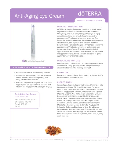 All words with trademark or registered trademark symbols are trademarks or registered trademarks of dōTERRA Holdings, LLC ©2017 dōTERRA Holdings, LLC Anti-Aging Eye Cream PIP US 080417