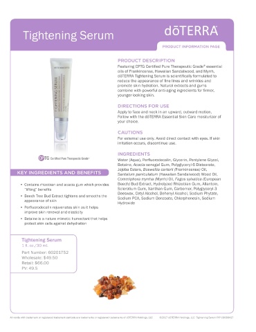All words with trademark or registered trademark symbols are trademarks or registered trademarks of dōTERRA Holdings, LLC ©2017 dōTERRA Holdings, LLC Tightening Serum PIP US080417