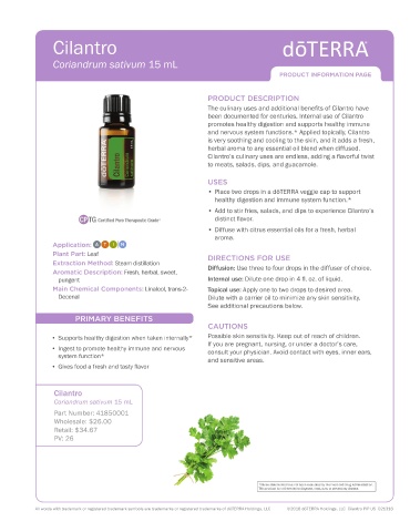 All words with trademark or registered trademark symbols are trademarks or registered trademarks of dōTERRA Holdings, LLC ©2018 dōTERRA Holdings, LLC Cilantro PIP US 021318