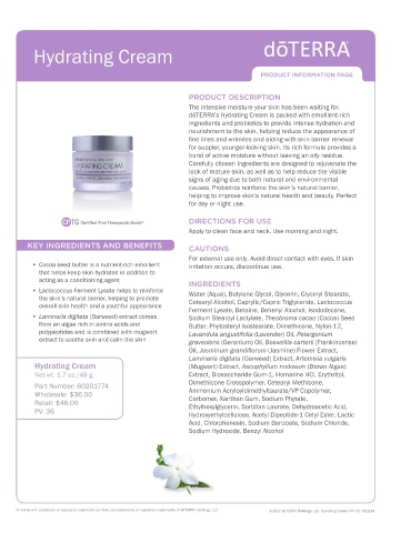 All words with trademark or registered trademark symbols are trademarks or registered trademarks of dōTERRA Holdings, LLC ©2017 dōTERRA Holdings, LLC Hydrating Cream PIP US 010219