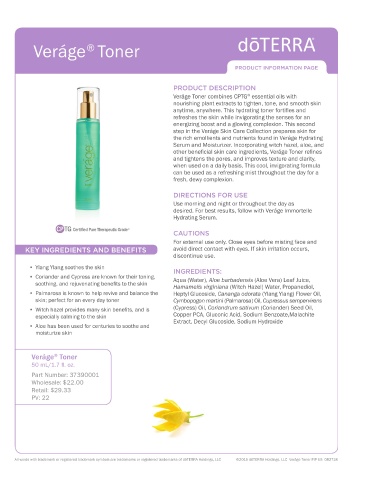 All words with trademark or registered trademark symbols are trademarks or registered trademarks of dōTERRA Holdings, LLC ©2015 dōTERRA Holdings, LLC Veráge Toner PIP US 082718