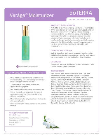 All words with trademark or registered trademark symbols are trademarks or registered trademarks of dōTERRA Holdings, LLC ©2015 dōTERRA Holdings, LLC Veráge Moisturizer PIP US 082718