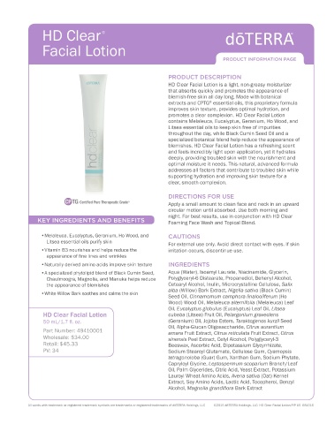 All words with trademark or registered trademark symbols are trademarks or registered trademarks of dōTERRA Holdings, LLC ©2015 dōTERRA Holdings, LLC HD Clear Facial Lotion PIP US 081016