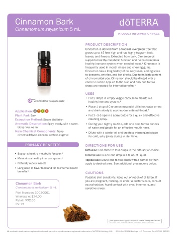 All words with trademark or registered trademark symbols are trademarks or registered trademarks of dōTERRA Holdings, LLC ©2018 dōTERRA Holdings, LLC Cinnamon Bark PIP US 012419