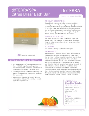 All words with trademark or registered trademark symbols are trademarks or registered trademarks of dōTERRA Holdings, LLC ©2019 dōTERRA Holdings, LLC dōTERRA ® SPA Citrus Bliss Bath Bar PIP US 010719