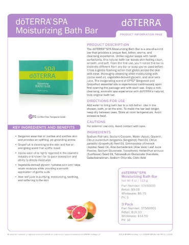 All words with trademark or registered trademark symbols are trademarks or registered trademarks of dōTERRA Holdings, LLC ©2016 dōTERRA Holdings, LLC dōTERRA ® SPA Bath Bar PIP US 112018