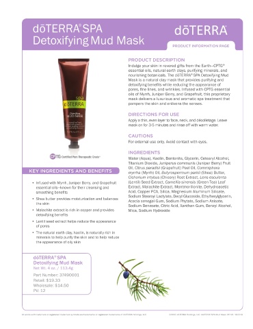All words with trademark or registered trademark symbols are trademarks or registered trademarks of dōTERRA Holdings, LLC ©2015 dōTERRA Holdings, LLC doTERRA ® SPA Mud Mask PIP US 102218