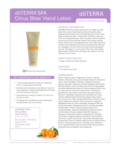 All words with trademark or registered trademark symbols are trademarks or registered trademarks of dōTERRA Holdings, LLC ©2015 dōTERRA Holdings, LLC dōTERRA ® SPA Citrus Bliss Lotion PIP US 080816