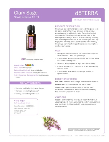 All words with trademark or registered trademark symbols are trademarks or registered trademarks of dōTERRA Holdings, LLC ©2015 dōTERRA Holdings, LLC CLary Sage PIP US 071917