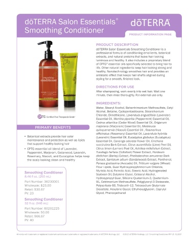 All words with trademark or registered trademark symbols are trademarks or registered trademarks of dōTERRA Holdings, LLC ©2015 dōTERRA Holdings, LLC Smoothing Conditioner PIP US 011617