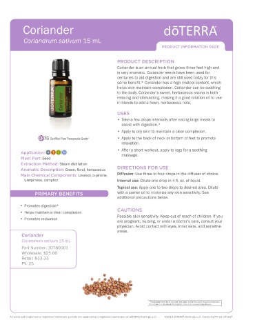 All words with trademark or registered trademark symbols are trademarks or registered trademarks of dōTERRA Holdings, LLC ©2019 dōTERRA Holdings, LLC Coriander PIP US 071917