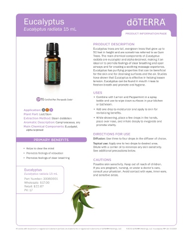 All words with trademark or registered trademark symbols are trademarks or registered trademarks of dōTERRA Holdings, LLC ©2019 dōTERRA Holdings, LLC Eucalyptus PIP US 012519