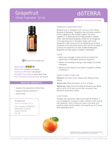 All words with trademark or registered trademark symbols are trademarks or registered trademarks of dōTERRA Holdings, LLC ©2015 dōTERRA Holdings, LLC Grapefruit PIP US 071917
