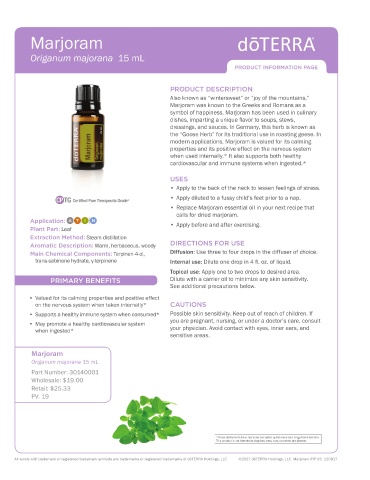 All words with trademark or registered trademark symbols are trademarks or registered trademarks of dōTERRA Holdings, LLC ©2017 dōTERRA Holdings, LLC Marjoram PIP US 120817
