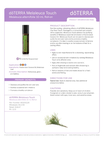 All words with trademark or registered trademark symbols are trademarks or registered trademarks of dōTERRA Holdings, LLC ©2015 dōTERRA Holdings, LLC Melaleuca Touch PIP US 061818
