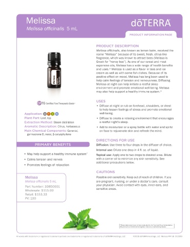 All words with trademark or registered trademark symbols are trademarks or registered trademarks of dōTERRA Holdings, LLC ©2019 dōTERRA Holdings, LLC Melissa PIP US 012319
