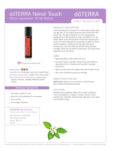 All words with trademark or registered trademark symbols are trademarks or registered trademarks of dōTERRA Holdings, LLC ©2018 dōTERRA Holdings, LLC Neroli Touch PIP US 020518