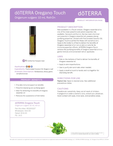 All words with trademark or registered trademark symbols are trademarks or registered trademarks of dōTERRA Holdings, LLC ©2018 dōTERRA Holdings, LLC Oregano Touch PIP US 121218