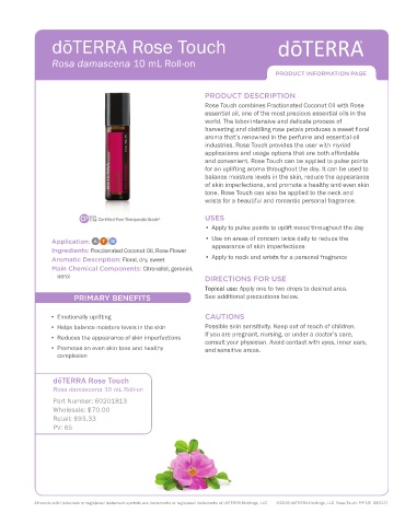 All words with trademark or registered trademark symbols are trademarks or registered trademarks of dōTERRA Holdings, LLC ©2019 dōTERRA Holdings, LLC Rose Touch PIP US 080117