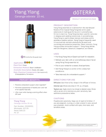 All words with trademark or registered trademark symbols are trademarks or registered trademarks of dōTERRA Holdings, LLC ©2019 dōTERRA Holdings, LLC Ylang Ylang PIP US 012419