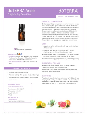 All words with trademark or registered trademark symbols are trademarks or registered trademarks of dōTERRA Holdings, LLC ©2019 dōTERRA Holdings, LLC dōTERRA Arise PIP US 031519