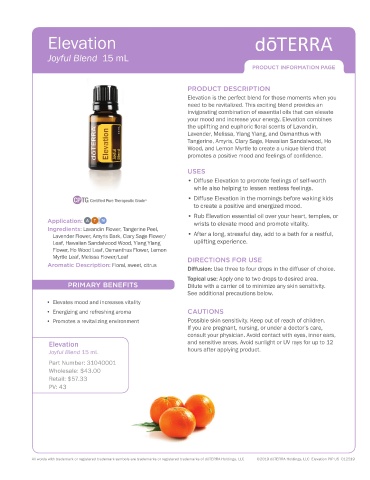 All words with trademark or registered trademark symbols are trademarks or registered trademarks of dōTERRA Holdings, LLC ©2019 dōTERRA Holdings, LLC Elevation PIP US 012519