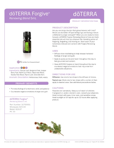 All words with trademark or registered trademark symbols are trademarks or registered trademarks of dōTERRA Holdings, LLC ©2015 dōTERRA Holdings, LLC Forgive PIP US 061818