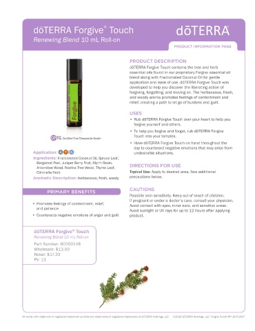 All words with trademark or registered trademark symbols are trademarks or registered trademarks of dōTERRA Holdings, LLC ©2015 dōTERRA Holdings, LLC Forgive Touch PIP US 072417